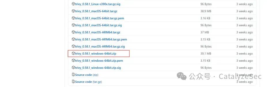 https://github.com/aquasecurity/trivy/releases/latest/下载二进制文件