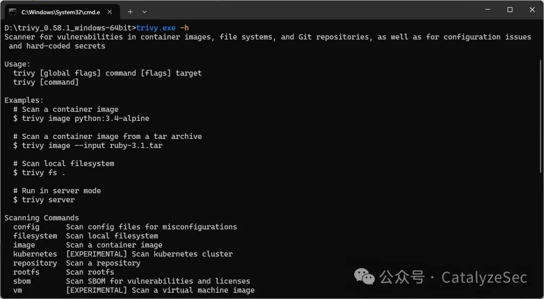 更详细功能使用可以访问项目地址查看:https://github.com/aquasecurity/trivy/
