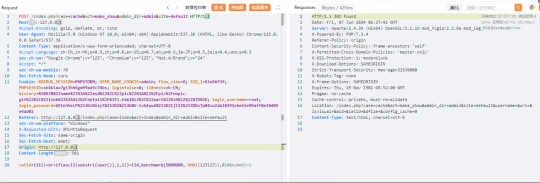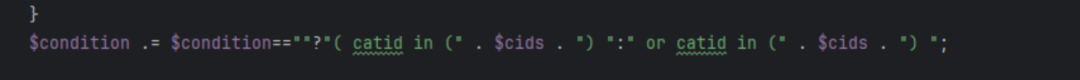 由于该cms过滤了引号,那这里我们寻找的拼接的地方主要是以括号,反引号和直接拼接的。