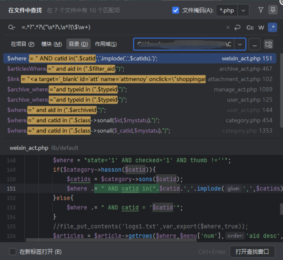 对某开源cms进行代码审计 ,发现虽然该cms虽然对参数参数进行了过滤,但是过滤有限,依然可以通过其他方法绕过进行sql注入,本文将将通过正则匹配的方式,并通过自动化查找工具,寻找某cms中存在的sql注入漏洞