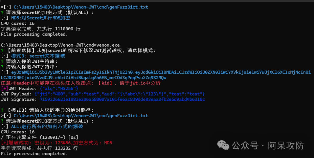 原创工具|Venom-JWT渗透工具 – 针对JWT漏洞和密钥爆破服务渗透测试