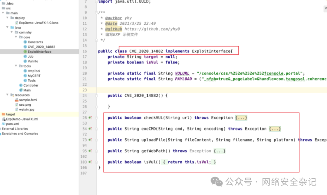 使用这个项目的时候,你不需要精通Java语言,只要对Java的基本语法有所了解就行。我们可以参照项目中自带的EXP示例,按照示例的模式和要求进行操作,这样就能够快速开发出独属于自己的漏洞利用工具,进而构建起自己的漏洞利用库。