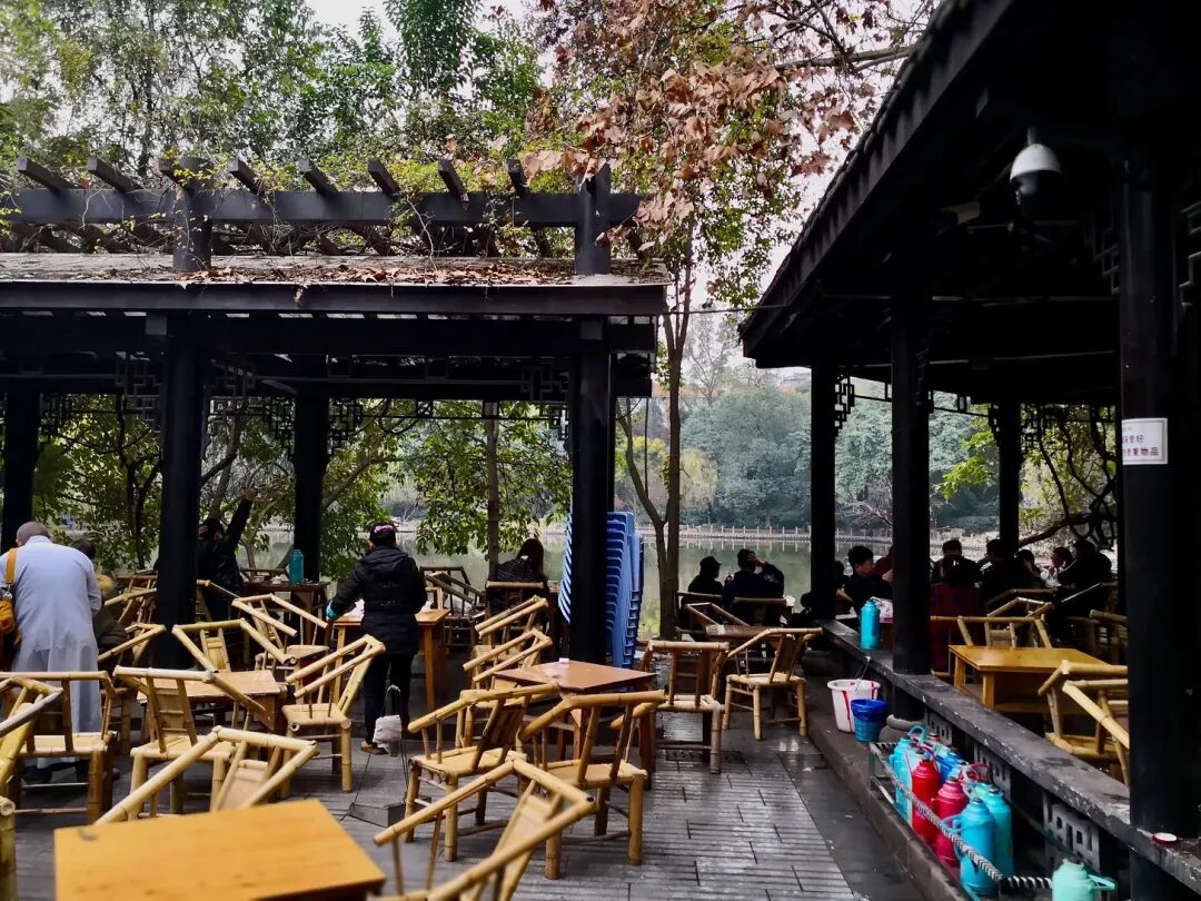 位于成都人民公园的标志性建筑鹤鸣茶社在寒冷的冬日早晨准备迎接客人。Source: Natto Thoughts