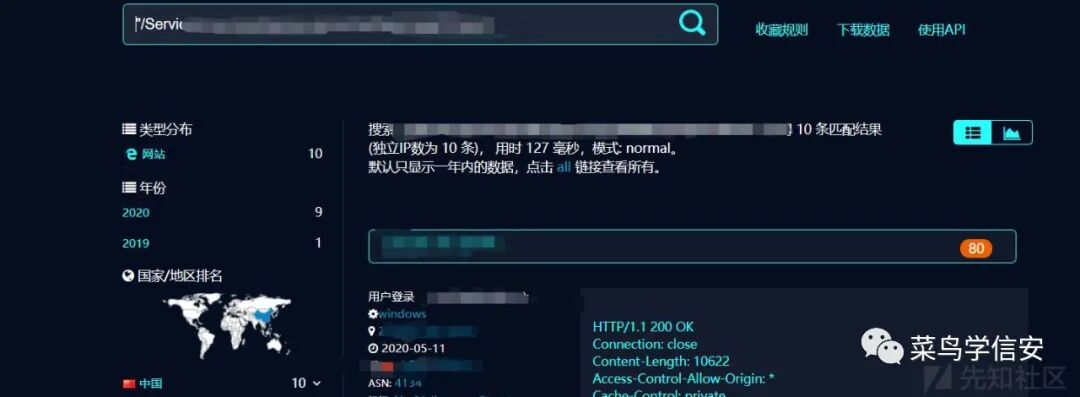 先看学校的域名ip地址注意:这里我建议不要看主域名的,看二级域名的ip地址。因为一些地区的职业院校都是集中统一在一台服务器上的,只有一些二级域名才会搭建在学校的机房里面如我们学校的二级域名:creat..com 上面搭建的系统是智慧校园系统。IP归属地与学校地理位置符合。那么开始找C段。fofa关键词: 1_2.230..1/24在1_2.230..194:8000下面找到一个系统。功能不详。因为只有一个登录