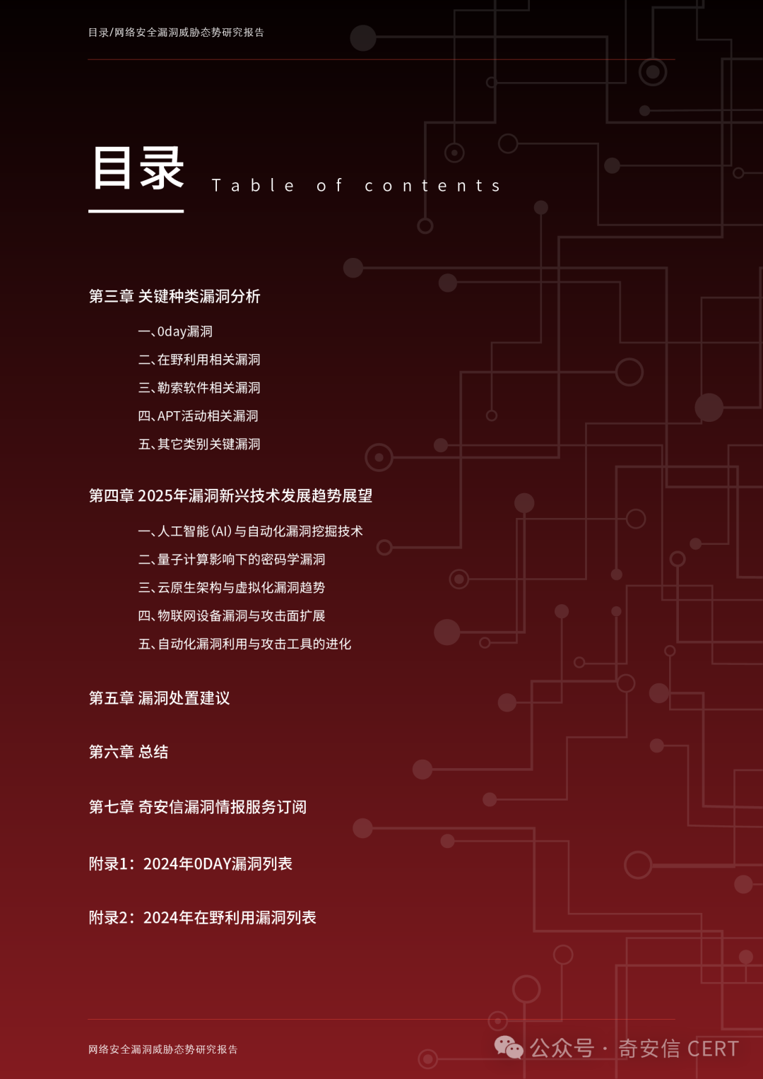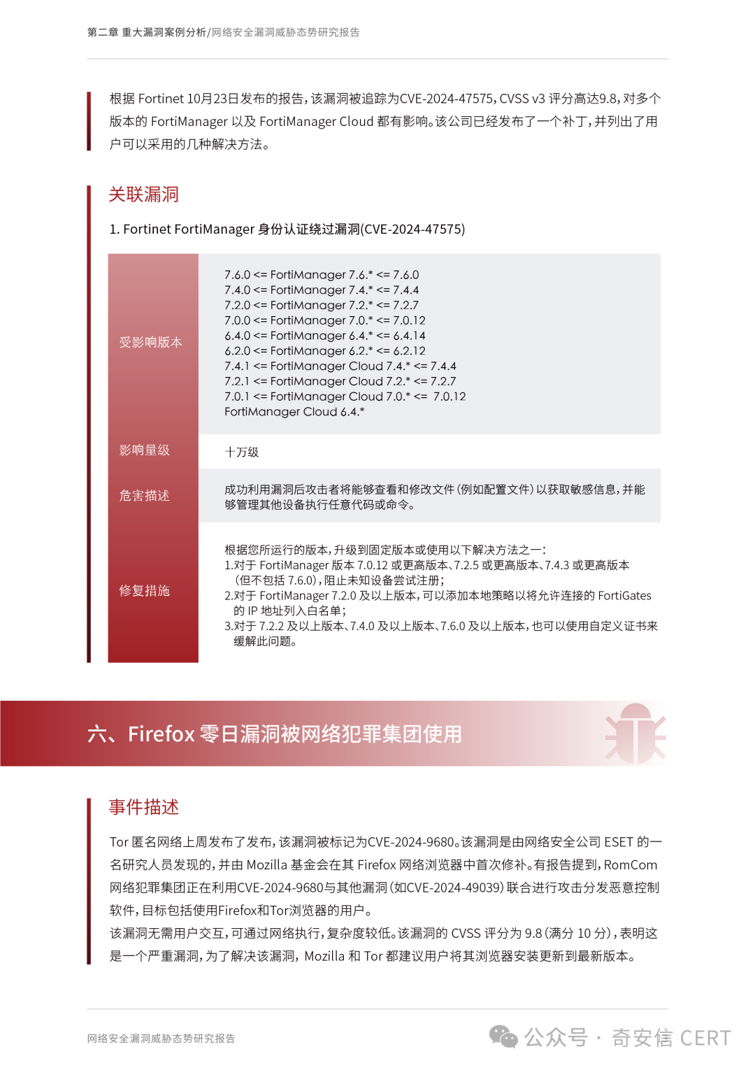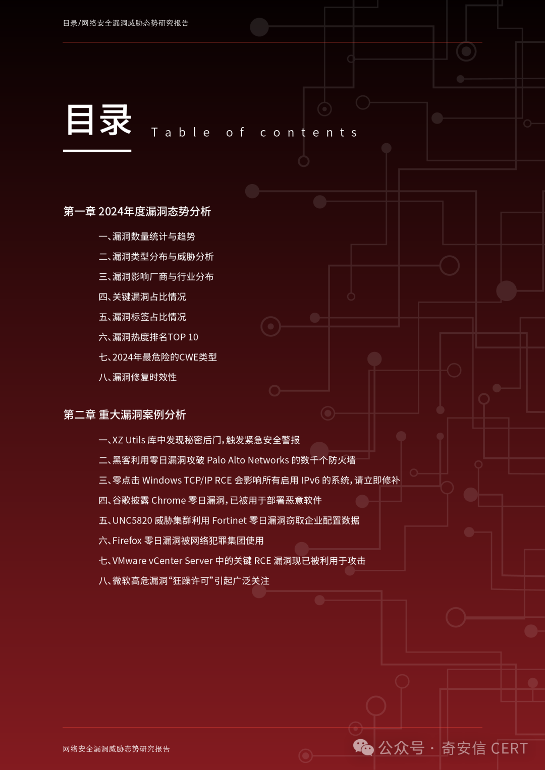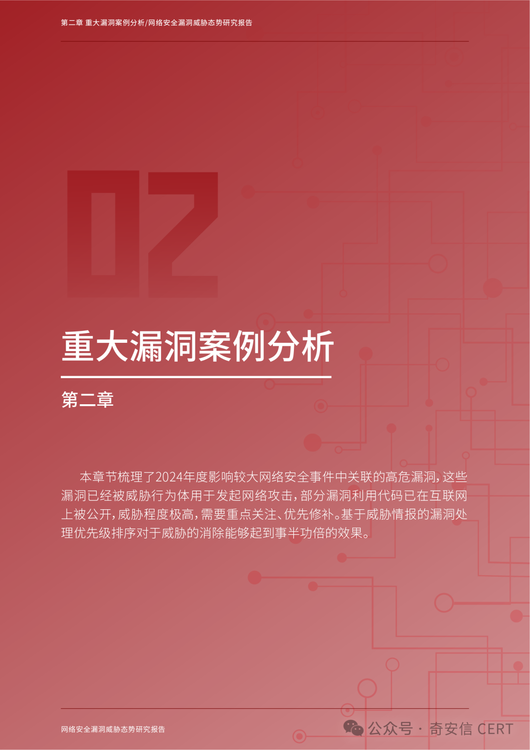 展望2025年,人工智能、量子计算、云原生架构和物联网的快速发展进一步扩展了漏洞暴露面。漏洞挖掘、修复和利用的矛盾将成为未来的攻防焦点。本报告立足2024年奇安信CERT汇集的漏洞数据、典型案例及安全事件,全面展示漏洞态势,同时也对2025年漏洞相关新兴技术发展趋势作出前瞻性展望,为企业、政府机构和网络安全从业者提供参考。