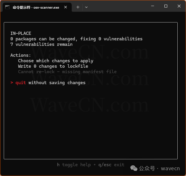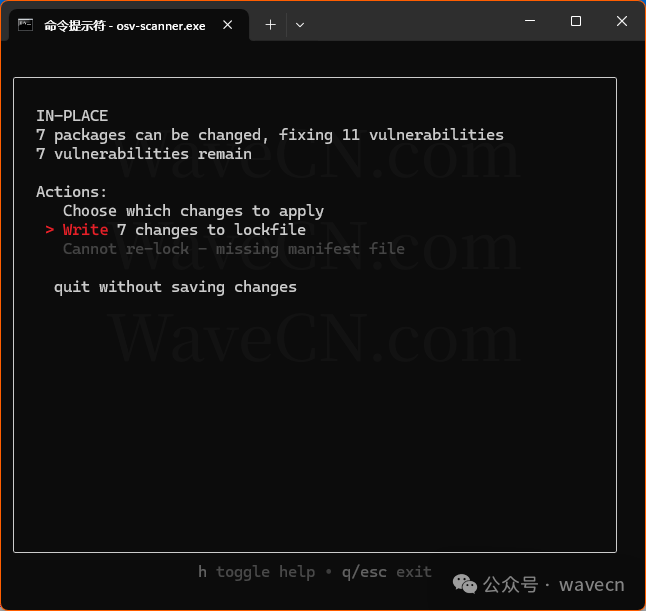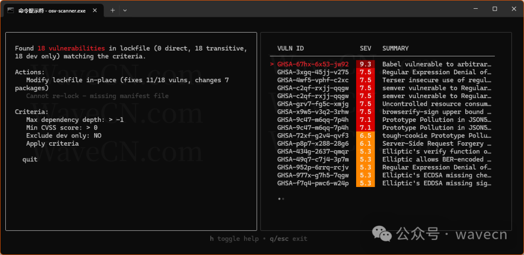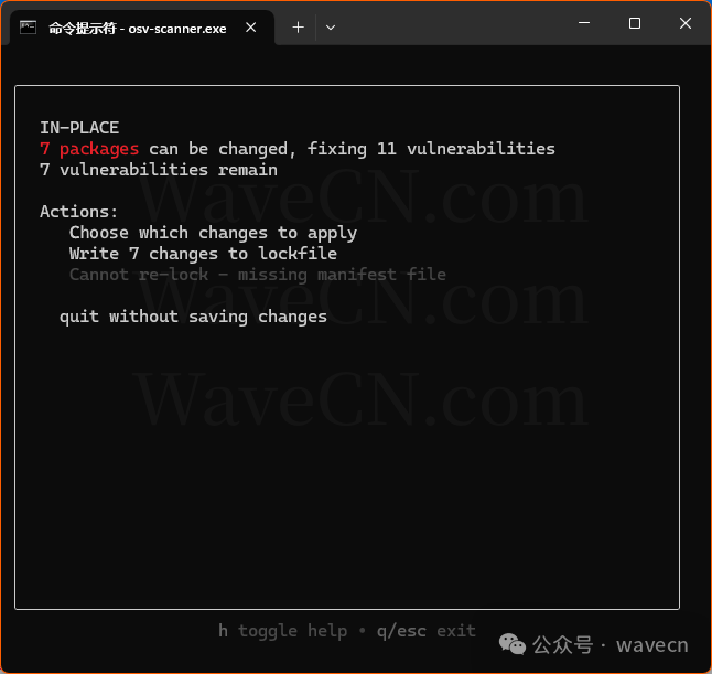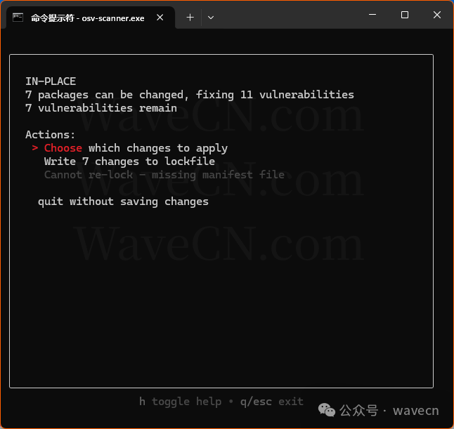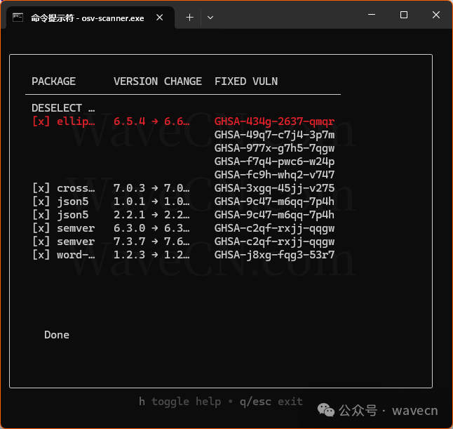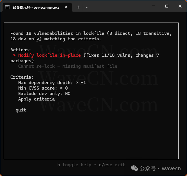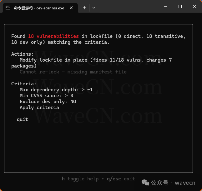 另外,从参数就可以知道,OSV-Scanner 还提供了交互式的操作。