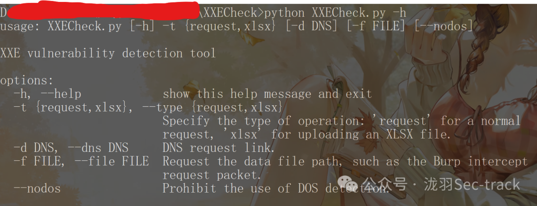 python3 XXECheck.py -t xlsx -f 1.txt -d dnslog