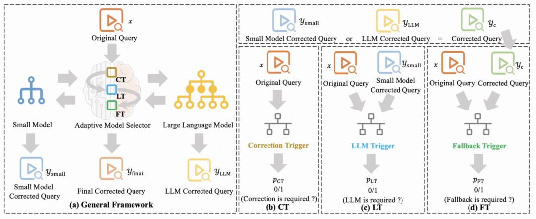 大小模型协同是降低大模型部署中计算开销的有效途径。本文以搜索场景中的查询纠错为例,围绕简单拼写错误、背景知识不足等多方面因素,提出了面向查询纠错的自适应大小模型选择方法。具体地,本文提出了Trigger