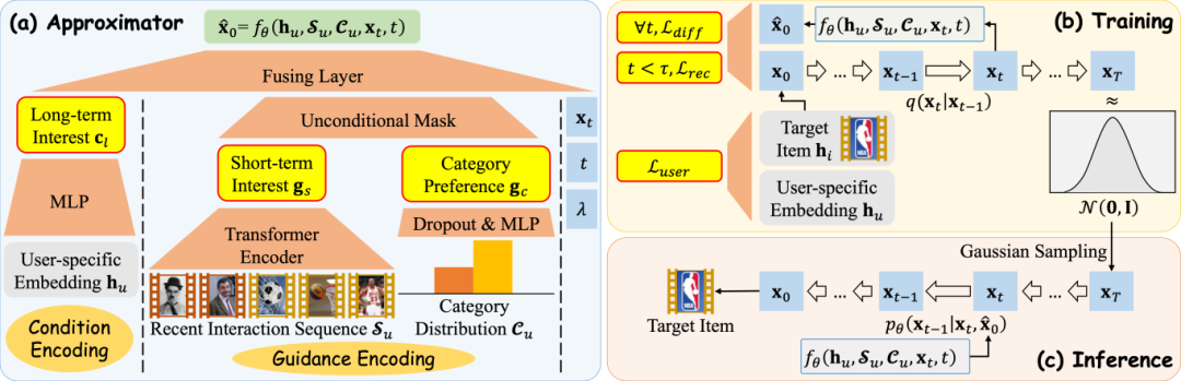 为此,在本文中我们提出了一种可指导的条件扩散推荐模型(GCDR),旨在为每个用户学习多个分布。具体而言,GCDR尝试解决两个主要挑战,一是学习解耦的兴趣分布;二是学习个性化兴趣分布。GCDR分别通过条件扩散和指导扩散来捕捉用户间以及用户内的分布特性。它保留特定于用户的嵌入向量,以便为条件扩散编码长期兴趣;而对于指导扩散,它结合了从近期交互中编码得到的短期兴趣以及类别偏好。为了使扩散模型与推荐任务相匹配,我们使用三种损失函数(包括用户损失、推荐损失和扩散损失)对 GCDR 进行训练。在四个真实世界数据集上进行的大量实验表明,GCDR能够学习有效的用户分布,并且优于十三种最先进的基准方法。