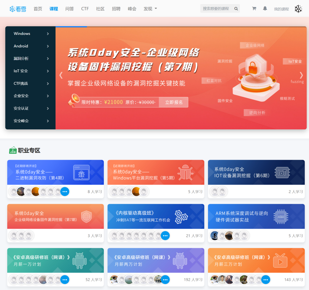 看雪课程主页展示