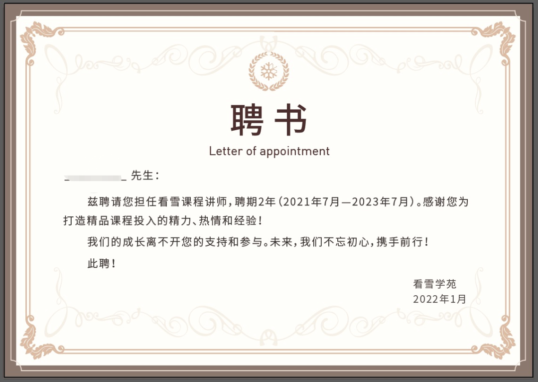 讲师聘书
