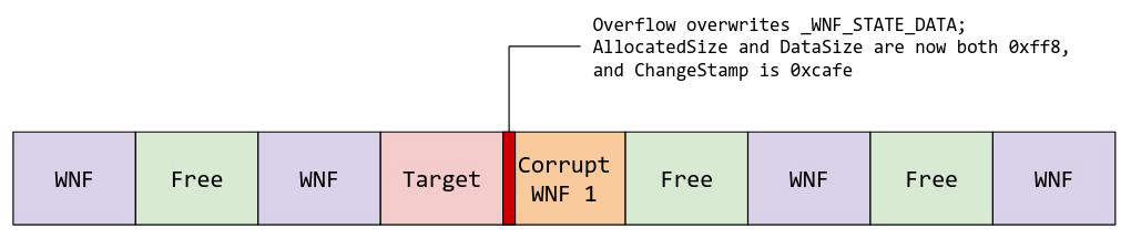 的基于堆的缓冲区溢出漏洞。通过构造自定义重解析点,可以触发缓冲区溢出来破坏相邻的_WNF_STATE_DATA