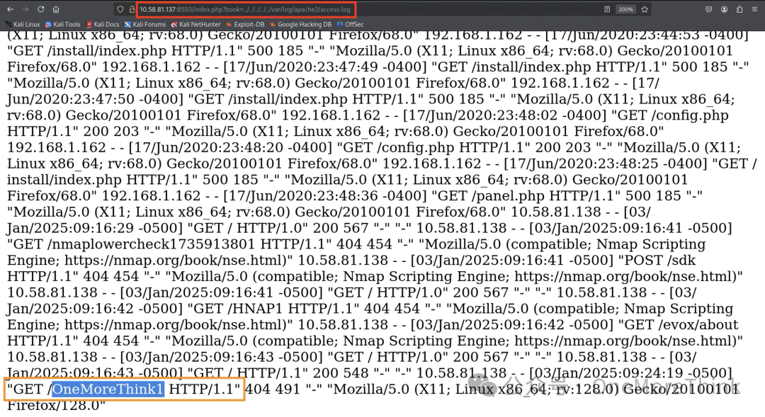 逐个访问,确认ssh登录日志无法访问、smtp通信日志无法访问、http访问日志可以访问,那就通过http访问日志进行投毒。