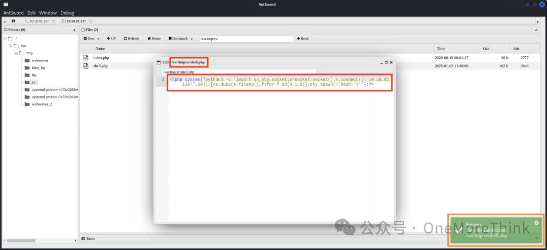 写入反弹webshell,通过访问webshell文件触发执行,最终获得root用户权限。