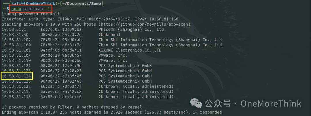 靶机启动后,没有提供IP地址。由于Kali和靶机在同一个C段,可以扫描ARP协议获取靶机IP地址。
