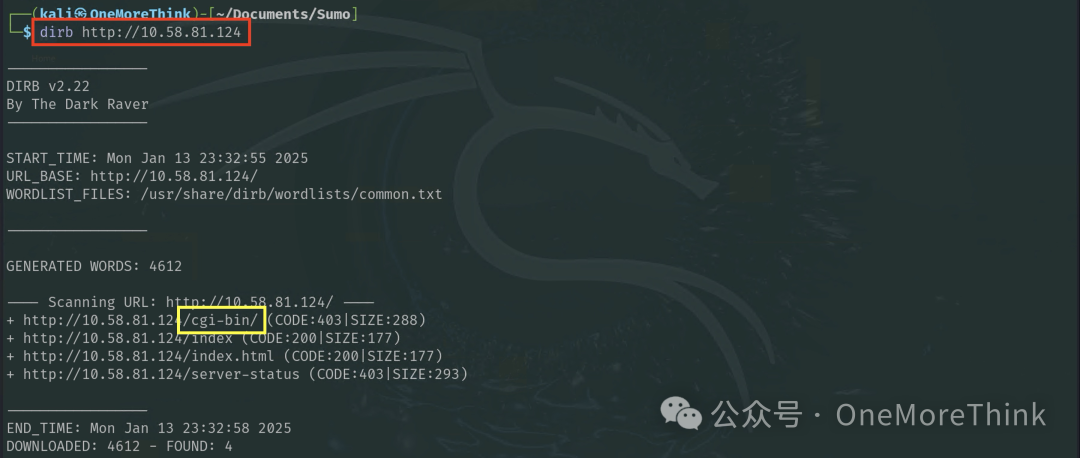 扫描网站目录和页面,发现/cgi-bin/目录。