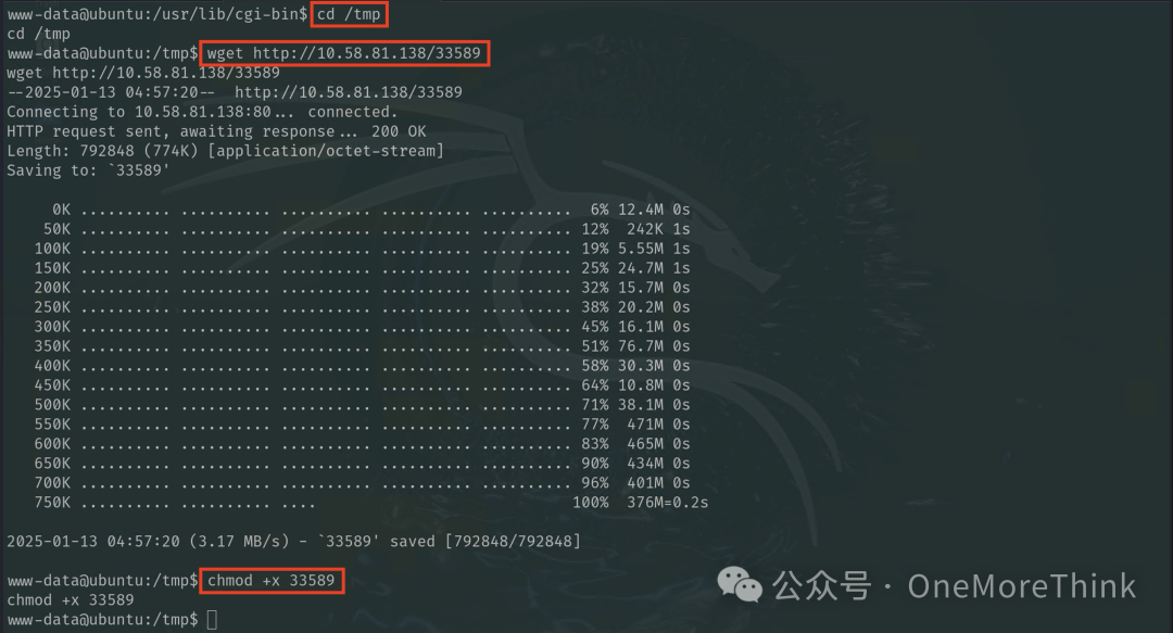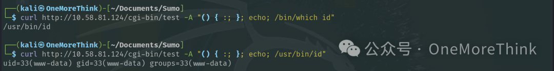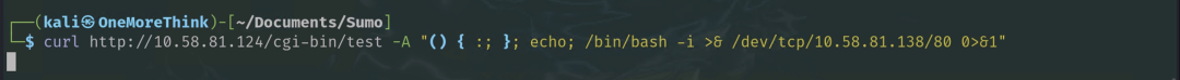 通过UA头向CGI程序的环境变量注入恶意代码,在CGI程序处理CGI请求时触发执行,确认/cgi-bin/test页面存在破壳漏洞,可以执行任意命令。