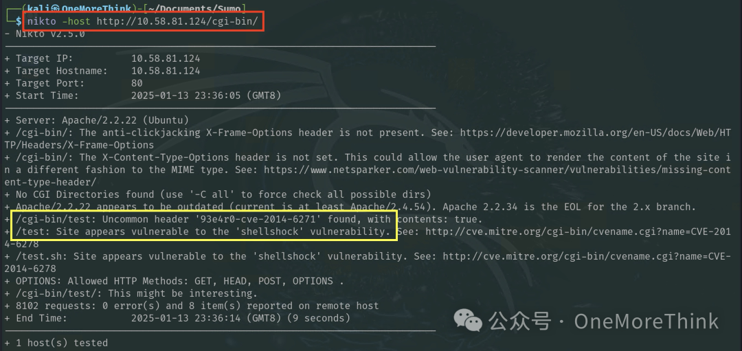 扫描/cgi-bin/目录下的漏洞,疑似存在shellshock破壳漏洞。