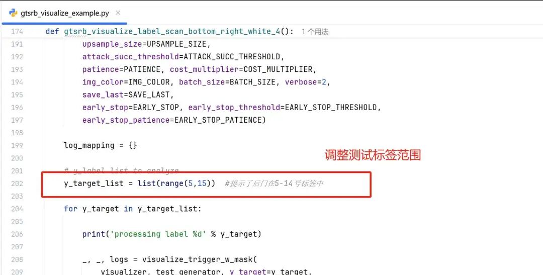 详细代码已放置于解题文件夹中,根据model参数文件和提示的target_list调整代码,并运行”./解题/gtsrb_visualize_example.py”,对测试标签列表逐个进行trigger逆向。