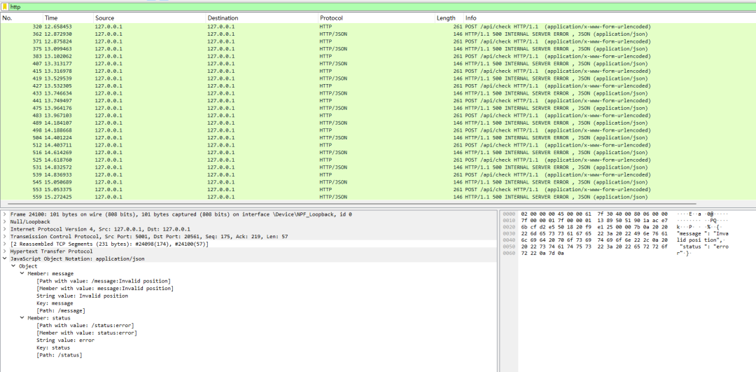 exe进行了加壳处理无法直接分析盲注逻辑,考虑根据流量包中请求与响应构造模拟客户端,再使用client.exe对模拟客户端进行测试得到flag