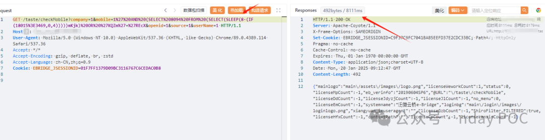 泛微-云桥e-Bridge checkMobile SQL注入漏洞(XVE-2024-34435)