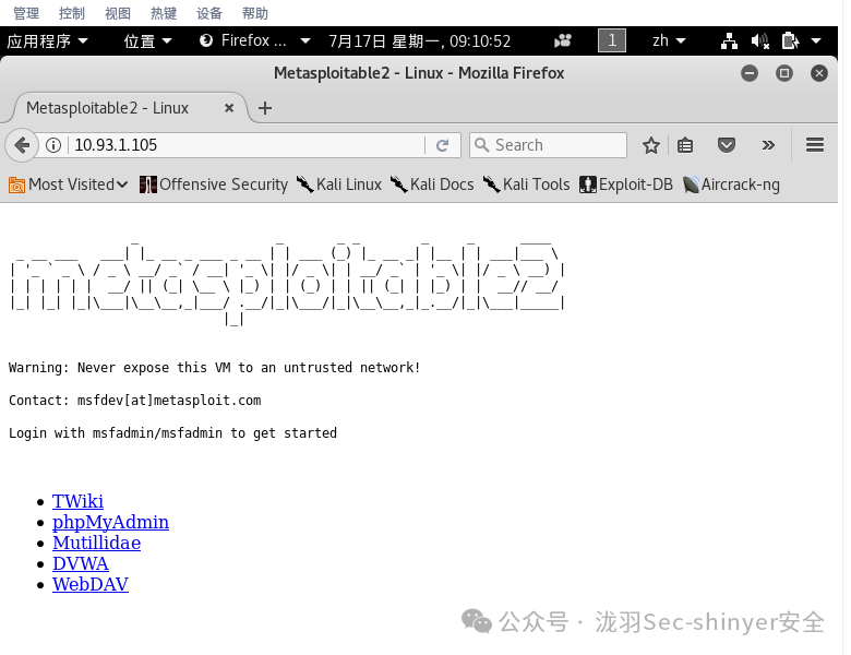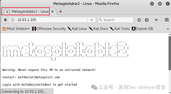我们选取metasploitable2作为被攻击服务器,在SYN FLOOD攻击发起之前,可以正常访问服务器上的web服务