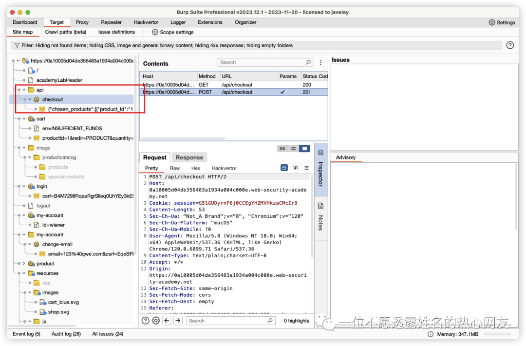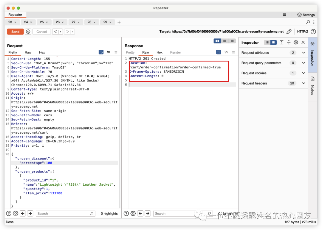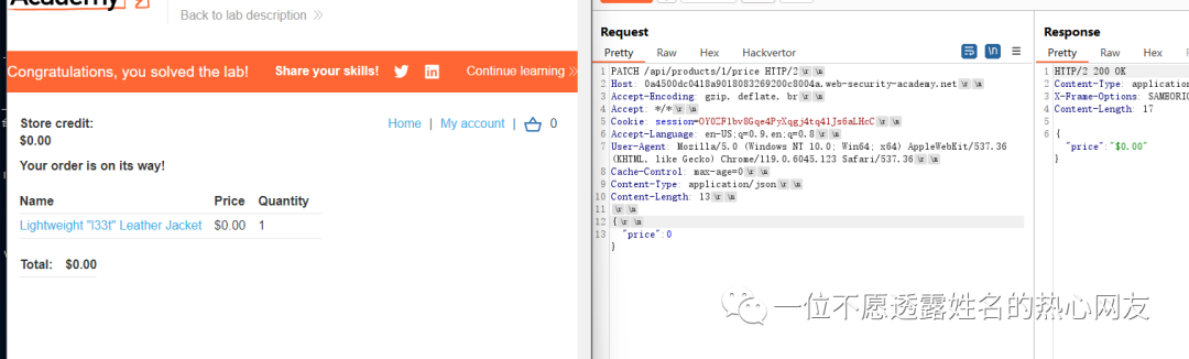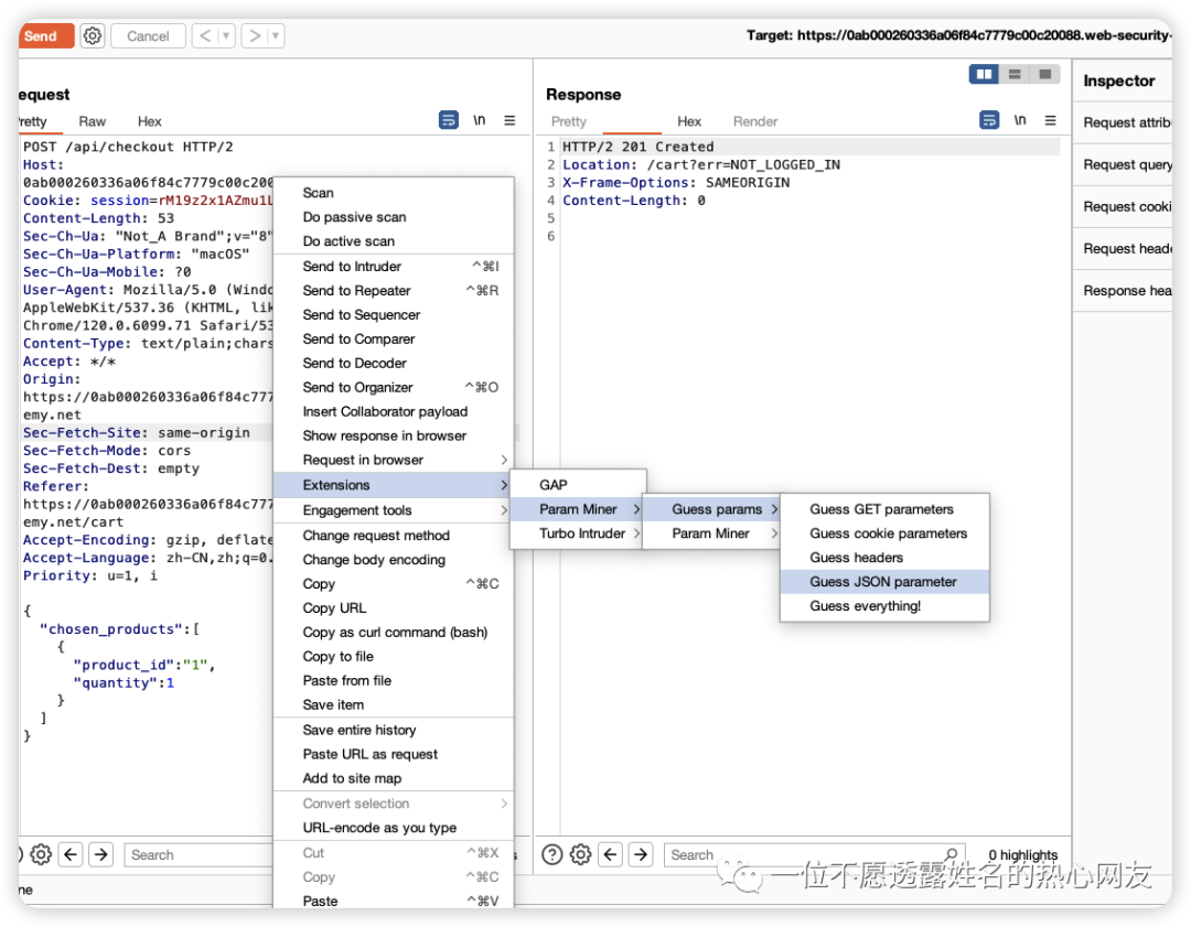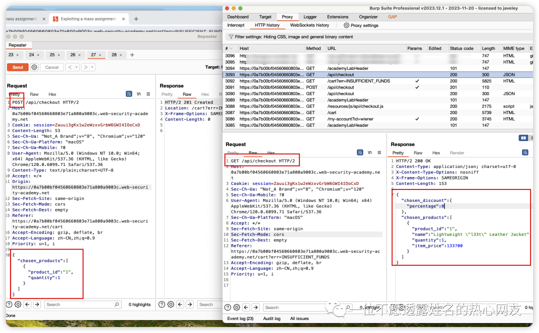 Lab: Exploiting a mass assignment vulnerability | Web Security Academy (portswigger.net)