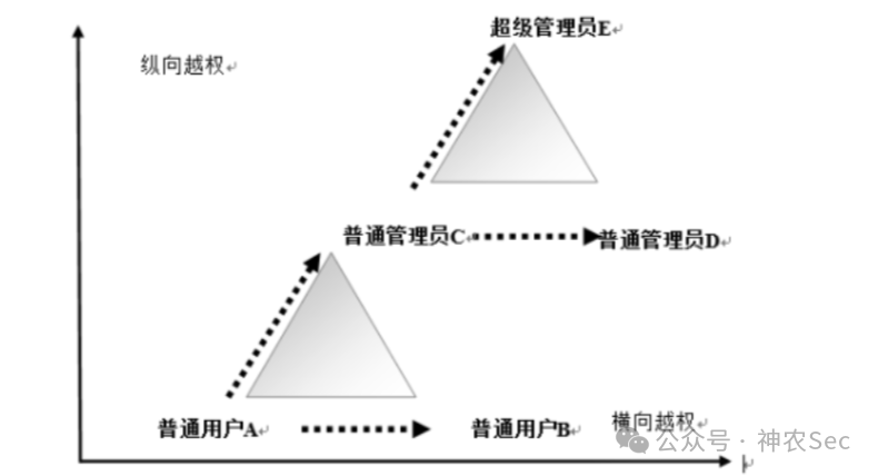 越权访问这类漏洞是指应用在检查授权时存在纰漏,使得攻击者在获得低权限用户帐后后,可以利用一些方式绕过权限检查,访问或者操作到原本无权访问的高权限功能。其与未授权访问有一定差别。垂直(纵向)越权指的是一个低级别攻击者尝试访问高级别用户的资源,如图所示。