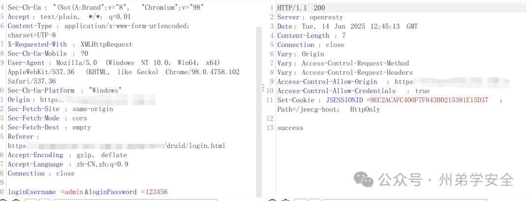 接着看到durid,我当时预想的是:弱口令进入druid,在session中看一下有效期内的cookie,进入后台,美滋滋,废话不多说,开干