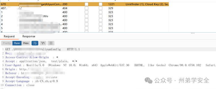 此处fuzz不是用dirsearch跑默认字典,由于现在api自定义接口命名,以前的很多字典很难跑出来成果了,跑个备份啥的可能成功,我这里用findsomething提取的,当然了,也可以用jsRoutescan提取,都一样,提取出来以后可以用dirsearch跑一遍,或burp自带的fuzz