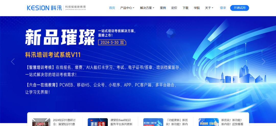科汛网校KesionEDU是KESION科汛开发的在线教育建站系统,支持在线直播教学、课程点播、录播授课等多种教学方式,满足不同场景下的教学需求。