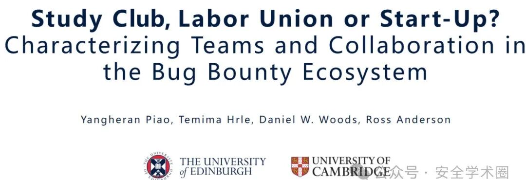 爱丁堡大学&剑桥大学|漏洞赏金生态系统中的团队与合作