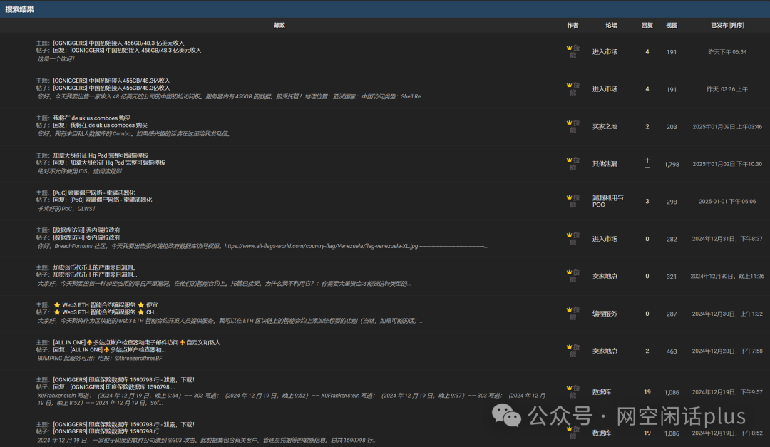 帖子主题多涉及数据泄露、初始访问权限出售、数据库访问、漏洞利用等网络安全相关内容。发帖者通常提供详细的服务描述、数据量、地理位置及价格,部分帖子附有样本或截图作为证明。交易多通过私信或第三方平台(如Telegram)进行,部分帖子强调“托管”服务以确保交易安全。发帖语言简洁直接,重点突出服务内容和交易方式。