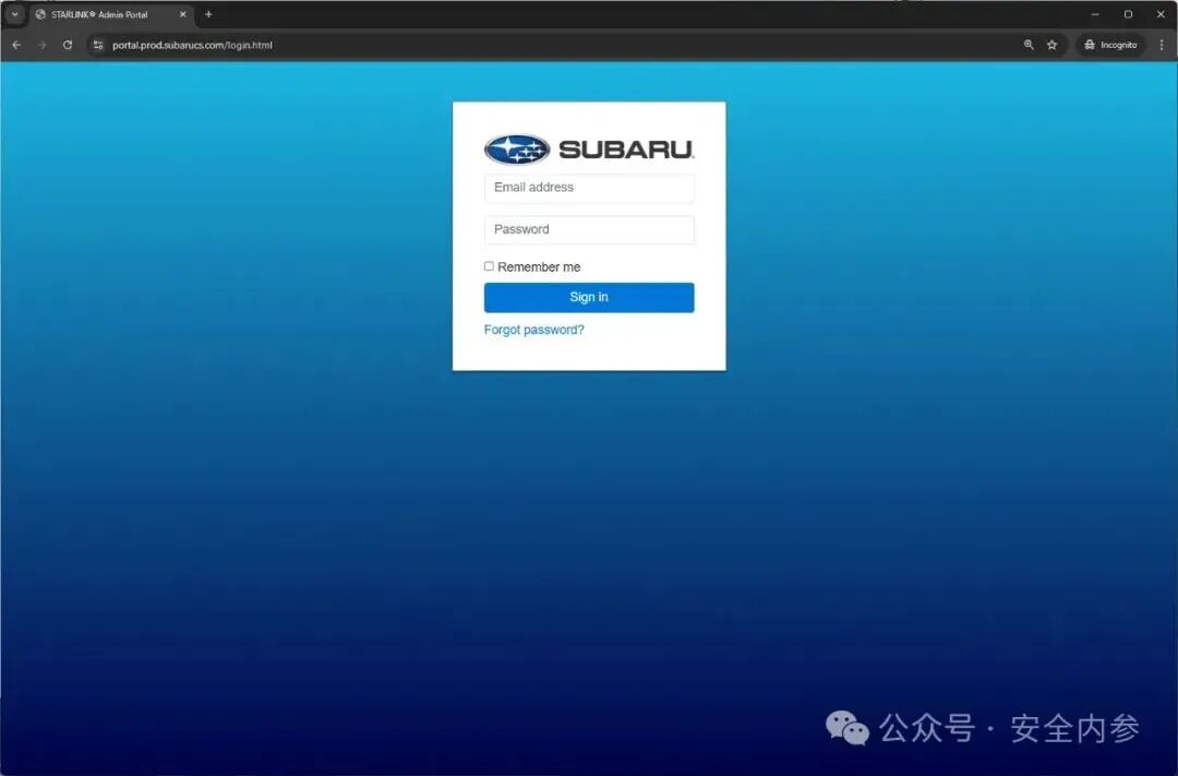 攻击者可以利用最基本的车主信息,访问斯巴鲁汽车星链管理系统,进行定位或远程操作。