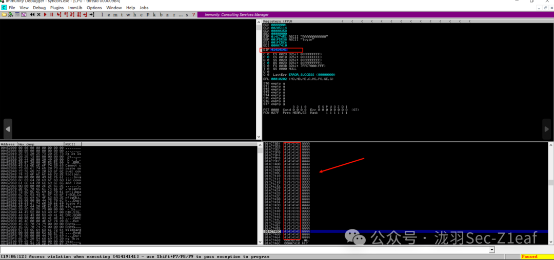 使用脚本,将800个A替换成msf生成的无效数据,然后执行脚本。