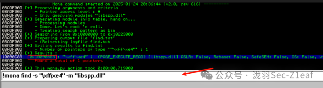 !mona find -s "\xff\xe4" -m "libspp.dll"