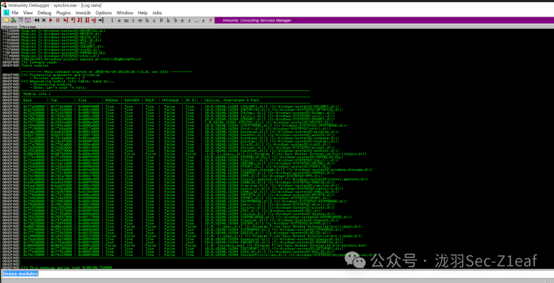 查找出所有模块了,里面的内容是所有模块安全机制的开启情况。我们要攻击一个目标,那肯定会选择一个安全机制不完善的,有严重安全机制缺陷的。根据这个要求,我们找到了全为False、没有开启安全机制的模块:libspp.dll