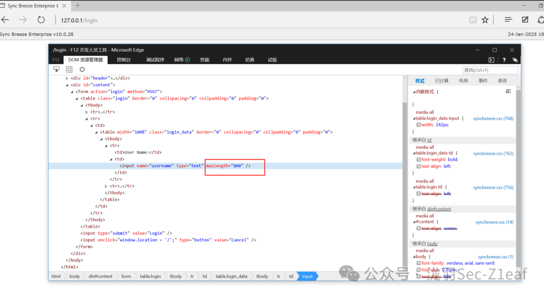 一般前端页面都会限制登陆框的写入字符,先使用浏览器的开发者工具,看看字符限制是多少。
