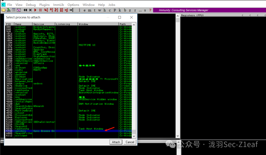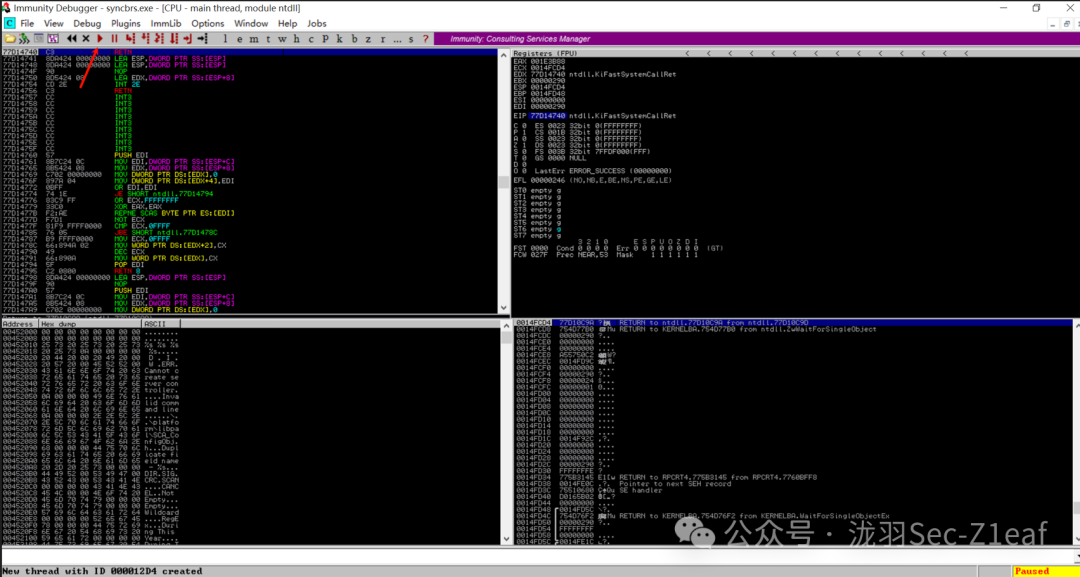 打开成功后,进程是出于暂停状态的,我们先点击开始,让它运行起来。