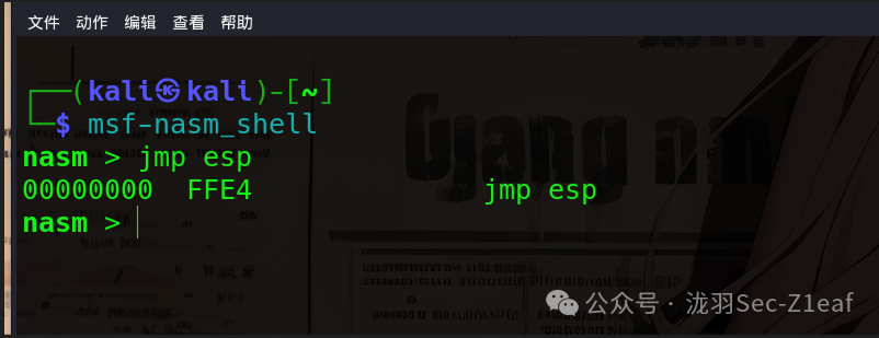 为了与计算机内存一致,先将jmp esp转为十六进制,这里可以使用msf