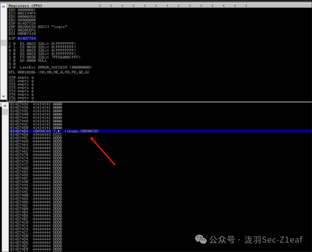 查询得知,偏移量为780,那么也就是说从781-784就会被精确的写入到EIP寄存器里面。