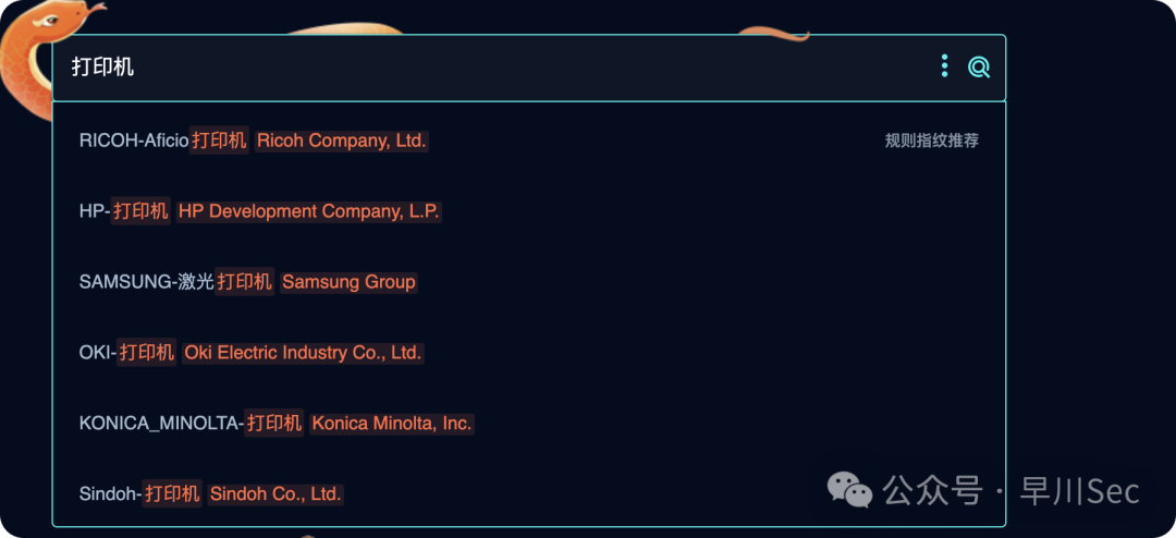 资产测绘语法:xx打印机设备、xx商城、注册、后台登录等等,提取相关系统指纹,例如路由器,监控等系统,规则列表等等。