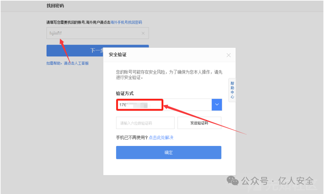 直接在找回密码处输入用户名密码,获取到手机号信息如下图1: