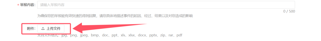 由于是某项目所以厚码,打开官网基本都是静态页面,没有什么交互功能,找了半天只有一个投诉功能,在投诉功能里存在附件处上,直接上传pdf型xss,点击提交后会返回查询码。