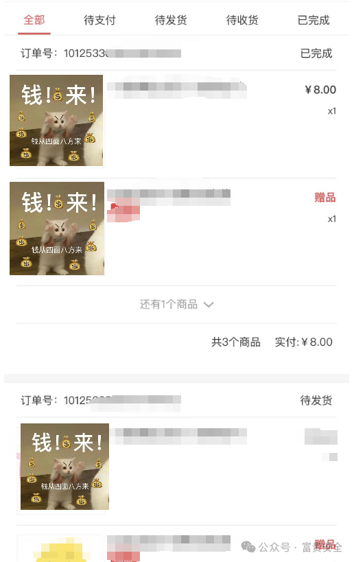 突然发现发现会员发货完后,其他待发货的会员的赠品会单独的创建一个新的链接,点击去支付发现支付成功。(神奇逻辑)