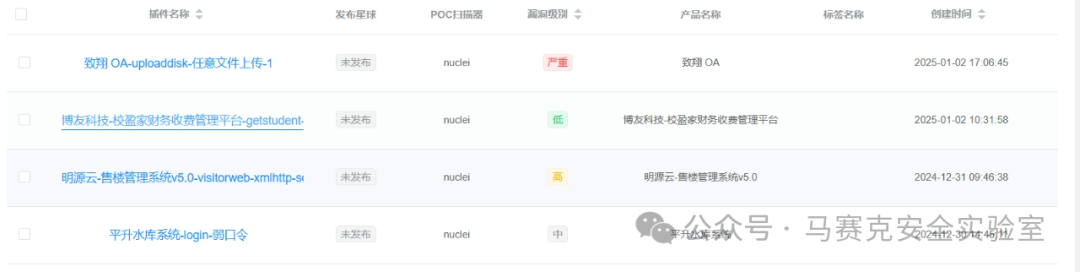 赛克安全本周漏洞推送(12.28-1.3)涉及致翔 OA、校盈家财务管理平台、明源云-售楼管理系统v5.0、平升水库系统漏洞