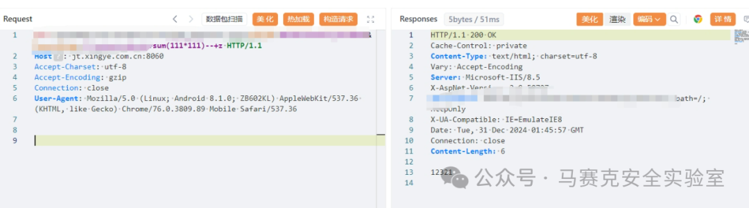 漏洞危害:恶意攻击者可以利用该漏洞执行恶意的注入语句,获取敏感数据或篡改数据库。