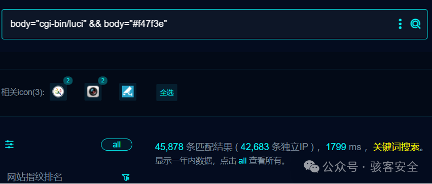 body=”cgi-bin/luci” && body=”#f47f3e”