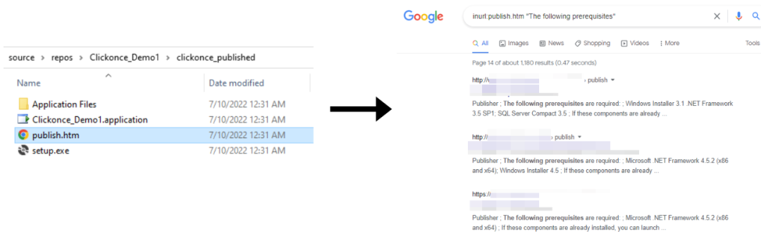 识别现有的 ClickOnce 部署可以像利用几个搜索引擎 dorking 技术一样简单(或使用稍后将介绍的 ClickonceHunter 工具)。在这个过程中可以使用多个工具(例如 dnSpy、reshacker、mage、sigcheck 等)。
